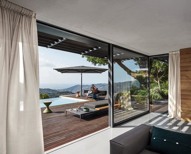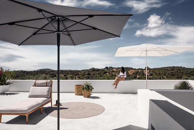 Unser Dürsten nach Sonne geht einher mit der Notwendigkeit, uns mitunter vor ihr zu schützen. Designer Henrik Pedersen erhebt mit seiner Serie “HALO Parasol” das Thema Sonnenschirm auf ein neues ästhetisches Niveau: Voller Eleganz trotzen die robusten pulverbeschichteten Aluminiumkonstruktionen mit widerstandsfähigen Sunbrella-Bespannungen den Elementen. HALO kommt als klassischer Mittelmastschirm oder als praktischer Freiarm- bzw. Ampelschirm, jeweils in unterschiedlichen Größen und wie gewohnt zeitlos-eleganten Farben.