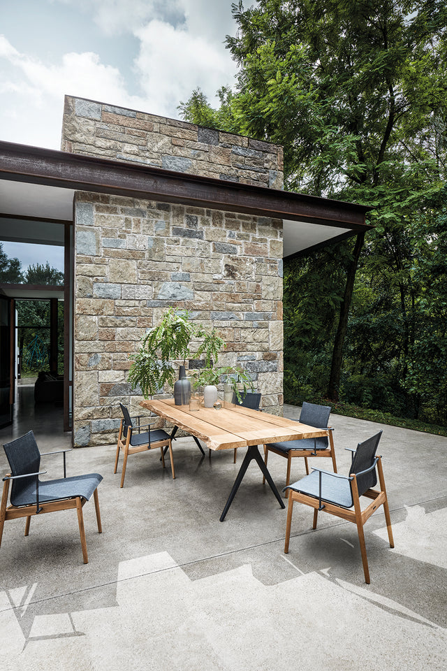 Mit seinem unschlagbaren Sinn für Ästhetik und für Sitzkomfort schuf er die unübertroffen komfortable Kollektion SWAY.Die Dining-Stühle kommen als Freischwinger oder mit elegantem Teakholzunterbau. Neu im Programm ist die Sonnenliege "SWAY Lounger".
